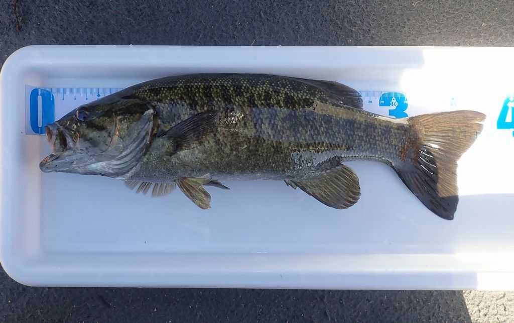 蛙太郎が釣ってから30分経った頃、私のロッドにアタリがあり、合わせに成功しました。久し振りにバスが掛ったので、やりとりは特別慎重でした。恥ずかしいほど、恐る恐る・・・