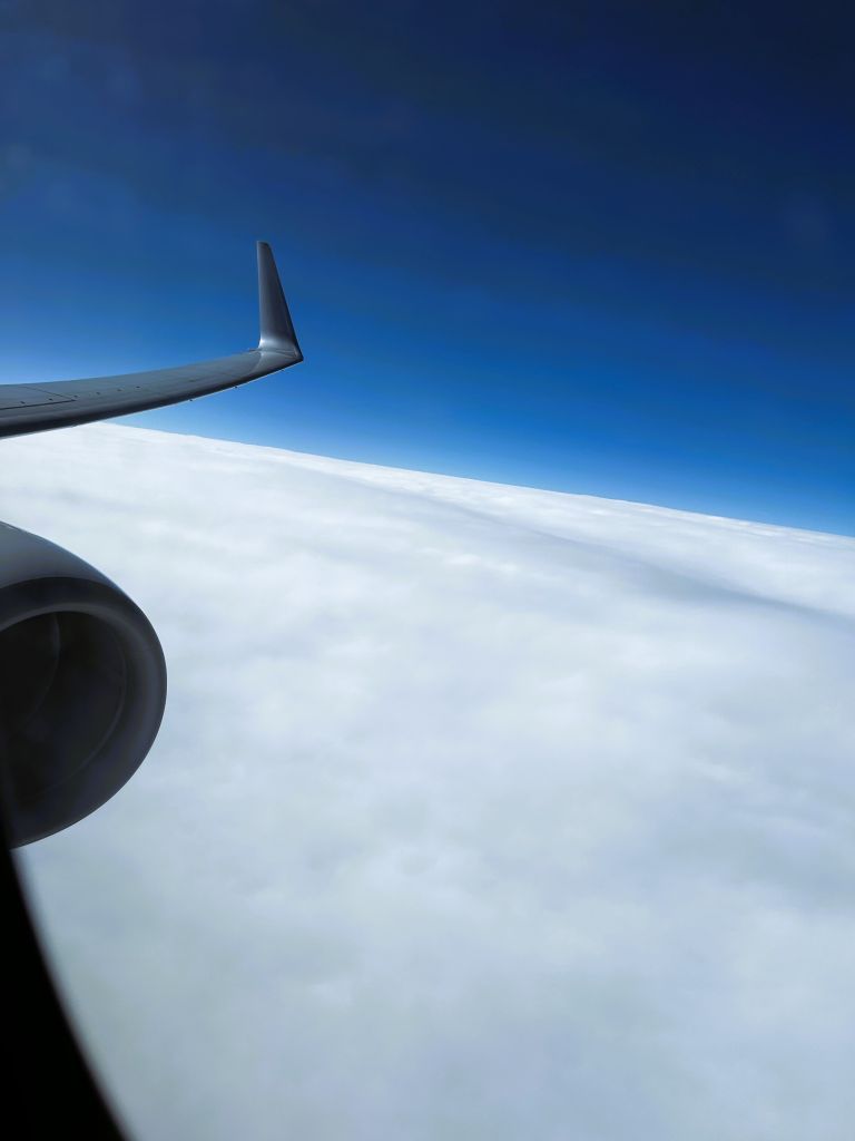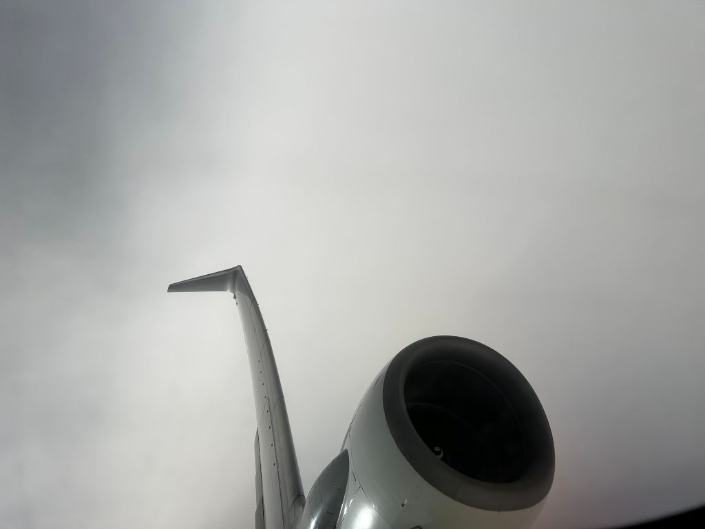 雲が厚く窓の外は真っ白で内も見えず、機体が時々大きく揺れたのです。