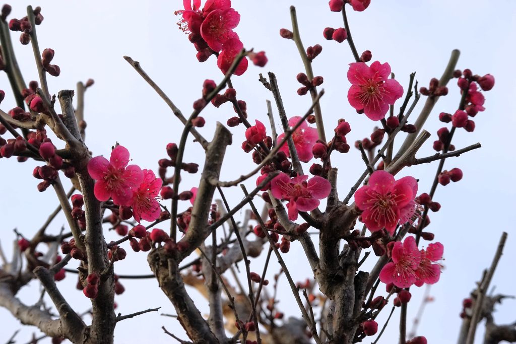 庭の紅梅では、どんどん花が開き始まりました。