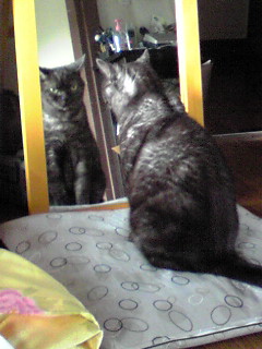 新しくパソコン買ったものの、夫が忙しくデータ移動できず、携帯よりの更新です。 るーさんが初めて鏡をみてるところを見ました。 もう一枚はクイズ!るーさんを探せです。分かるかな~。 寒いので本日より湯たんぽ使用。エコですね(*^-')b