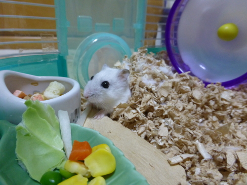 昨日と 今日は 子供たちの 参観日 新学期は なんやかんやと 忙しくって・・・ 今日 思い出したんだけど・・・ ( ̄д ̄;) たぶん 昨日は はなちゃんに お野菜を あげるのを 忘れてたような・・・ (´-ω-`*) 今日は お野菜を あげなくっちゃ ・・・っと 思って 大好きな ミックスベジタブルと お豆腐を ケージに 持っていき ゴソゴソしてると (・ω・o) あれっ? 今日は まだ 呼んでないのに もう 出てきて ソワソワして こっち見てるゥー (●´艸`)アハハ すぐに はなちゃんの 目の前に お野菜を 置いてあげると・・・ 「 待ってたでチュー 」 ・・・っと 言わんばかりに ガツガツ 食べ始めちゃったぁ~ ヾ(●´∀`●)ノ゛ 昨日は お野菜が なかったでチュー ブゥー だから 早く 食べたかったでチュ ガツガツ 食べまくる はなちゃん いつもは すぐに 隠れちゃうのに 今日は いい食べっぷりだなぁ ((´∀`笑))ハハハ ちょっと 男らしい 感じが はなちゃん っぽいなぁー (ノ∇≦*)ギャハハ♪ 昨日は お野菜 忘れてて ゴメンネ (*´∀`*) はなちゃんの 大好きな お野菜は 忘れないように するからね ♪(゚▽^*)ノ⌒☆ 応援 ボタンを ポチ ポチっと よろしく お願いでチュー 応援 ありがとう でチュ