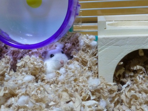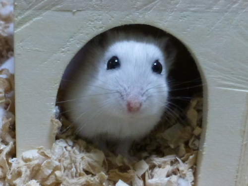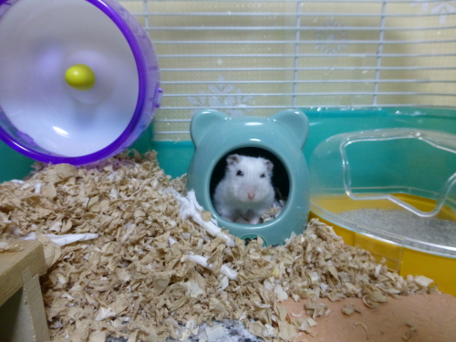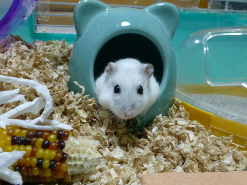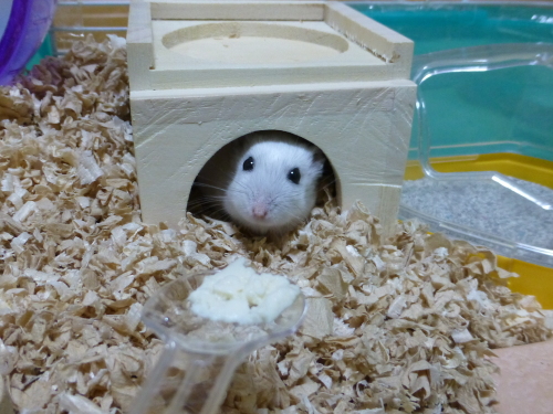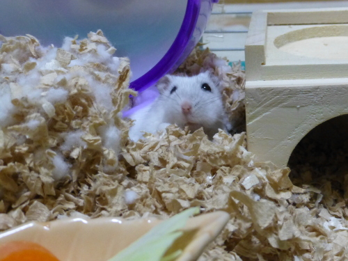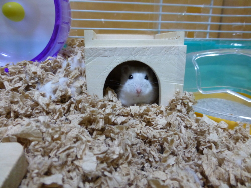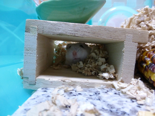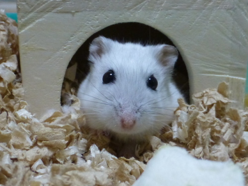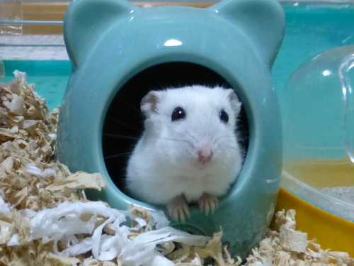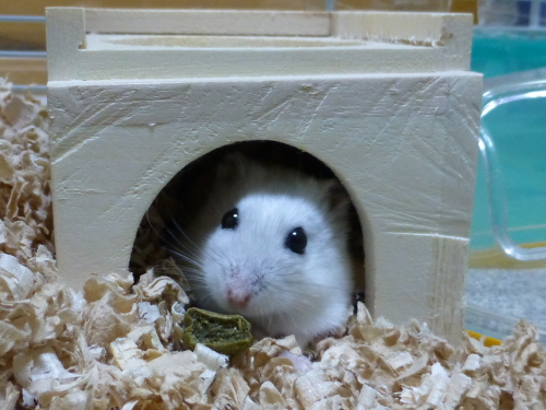 最近 お昼の 日差しは 暖かいけど なんだか 朝晩は 肌寒い 日が 続いてるんですゥw ((´д`))サムっ 今日も ちょっと寒いなぁ・・・ はなちゃんを 覗くと・・・ |゚Д゚))) はなちゃんも ちょっぴり 寒いでチュー どこに いるか わかるでチュかぁ ふう~ 今日も・・・ ちょっぴり 寒くないでチュかぁ・・・ すぐに お気に入りの場所に 潜っちゃう はなちゃん・・・ けっこう 綿で ぬくぬくの お部屋なんだろうなぁー ヾ(・ω・o) あったかそうだね ♪ お部屋に バックで 潜ってる ( ̄▽ ̄;)アハハ 完全に 潜って 出てこなく なりそうなので 急いで おやつを あげると・・・ モゾモゾ・・・ あっ おやつゥ~ +。(ノ`・Д・)ノオォオォ。+゚ おやつ パワー すごいです すぐに 顔出して おやつを ガッシリ 掴んで 食べてるゥ それが 何か・・・ モグモグ みなさんのところは ちょぴり 寒くないでチュかぁ~ モグモグ 体調 崩さないように 気をつけてチュ 今日も マイペースな はなちゃん やっぱり 可愛いなぁー ・.+:。ヾ(o・ω・)ノ゚.+:。 現在 人気ブログランキングと にほんブログ村に ランキング登録しています よかったら 2つ ポチ ポチっと 応援を よろしく お願いいたしま~すヾ(●´∀`●)ノ゛