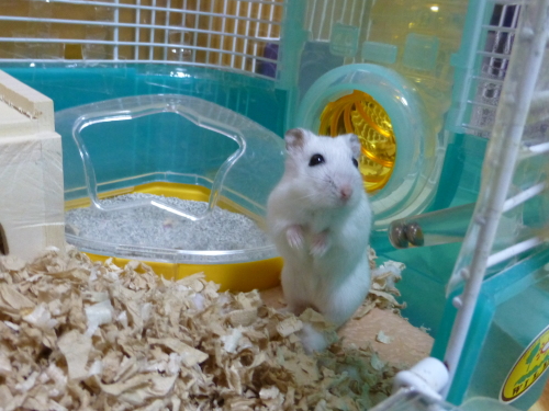 昨日から 子供達の 新学期が 始まり 書類などを 書きまくって グッタリの 私です・・・( ̄▽ ̄;) 字を 書くのって 苦手なんですゥw (; ̄д ̄) それに 家の付近の 地図を 書くのも 苦手なんですゥw ()´д`()ゲッソリ・・・ なんとか やっと 書類を 書き 終わり はなちゃんを 見に行くと・・・ 可愛く こっちに 寄ってきてくれたぁ ヾ(●´∀`●)ノ゛きゃー♪ 可愛いなぁ ! はなちゃん 見ると 癒される~ 疲れも 一瞬で ブッ飛ぶなぁ (●´艸`)アハハ 可愛く こっち見てる やっぱり 夜行性だねェ~ ヾ(・ω・o) 午前1時だから 元気に 遊んでましたぁ 夜は ちょっぴり 寒そうなので 少し 綿を 入れてあげると・・・ ヾ(・ω・o)ノ 大喜びの はなちゃん わさわさ 綿を お気に入りの 場所に 入れて 寝床を 作ってるゥ ( *´艸`)クスッ♪ わ~い ヾ(*´∀`*)ノ 綿でチュ~ なんだか 綿を あげると 嬉しそうな はなちゃんでしたぁ やっぱり いつ見ても 癒されちゃいますね (*≧∀≦*) みんなの 可愛いペットちゃん達を 見に行って もっと 癒されよ~っと 現在 人気ブログランキングと にほんブログ村に ランキング登録しています よかったら 2つ ポチ ポチっと 応援を よろしく お願いいたしま~すヾ(●´∀`●)ノ゛