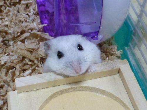 はなちゃんの ケージから カタカタ 音がするので 「 起きてるなぁー ( ̄∇ ̄)ニヤッ 」 っと 思い・・・ を 持って そーーーーーっと ケージに かけてある 布を のけると・・・ あっ 目が あってしまったぁw( ̄∇ ̄;) はなちゃんは びっくりしたのかなぁー フリーズしちゃったぁ (。・人・`。))ゴメンネ 数秒 フリーズした後 なにか もらえると 思ったのか そそくさ 近寄ってきたので 慌てて おやつを あげちゃいましたぁ 最近 まるまるしてきたから おやつを 控えようかと 思ったけど・・・ やっぱり 可愛いから 近寄ってくると おやつを あげたくなっちゃうなぁー(A;´・ω・)アセアセ 今日は 最後まで 読んでくれて ありがとうです ヾ(●´∀`●)ノ゛ また 不定期での マイペース ブログ更新になりますが よろしく お願いしま~す (*^-^*)ノ~~マタネー 応援 ボタンを ポチ ポチっと 押して くれると 嬉しいでチュ 最後まで 読んでくれて ありがとうです m(_ _)m