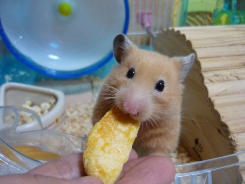 今日は はなちゃんの 大好きな おやつ ハムスターのまんま スペシャルでーす 美味しそうな 匂いがする クッキーですね ヾ(●´∀`●)ノ゛ 手渡しで あげると すぐに 飛びつき カジカジ 美味しそうな 音をたてて 食べてまーす((´∀`笑))アハハ カジカジ ポリポリ ほんとに 美味しそうな いい音だなぁ~ ((´∀`笑)) 最後の 1枚は おウチに お持ち帰り しました (★ ̄∀ ̄★) 今日 あげたのは これでーす クッキータイプのハムスターの主食!ハムスターのまんま スペシャル 110g【関東当日便】価格:282円(税込、送料別) ハムスター・モルモットの為のおやつプッチアニマルチーズ ニンジン入り 60g【関東当日便】価格:266円(税込、送料別) ハムスター・モルモットの為のおやつプッチアニマルチーズ キャベツ入り 60g【関東当日便】価格:266円(税込、送料別) 応援 ボタンを ポチ ポチっと 押して くれると 嬉しいでチュ 最後まで 読んでくれて ありがとうです m(_ _)m