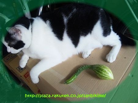 《四葉(スーヨー)/キュウリ》 2011/7/28家庭菜園で、初めてキュウリが収穫できました~♪♪上半分はゴーヤみたいで下半分は瓜みたいです。ゴンちゃん。お味もなんだか、見た目通り。上半分はゴーヤみたいに苦くて下半分は瓜っぽくかったです。デッカイ種が山ほど入っててん。キミのおちりにもなんかデッカイもん、詰まってそうやねぇ~(笑)そう、種が沢山つまっていましたが種取りは完熟させた後、枯らせてから取るものだとか。一応乾かしてはありますが、種まきは難しそうです。ちょ☆ボ缶 しましまブラザーズ+C のちょ☆ボ缶ちゃんから、嬉しい申し出が!なんと紙粘土でゴンと桜を作ってくれるそうなんです。後ろ姿前後左右がよくわかる写真が必要なのですがあれ? 簡単に見つかると思いきやゴンちゃんの背中案外、ちゃんとわかる写真がなかなかない。新たに撮るにしても、うちのモデルさん達は協力的だからなぁ。ちょ☆ボ缶ちゃん、もうちょっと待ってね。ちょ☆ボ缶ちゃんが描いてくれた、ゴンと桜です。▼牛猫たちを、応援してね!▼にほんブログ村 MIX白黒猫放射能を少なくする食生活キャンプ猫GAVIの、GAVIちゃんにわかり良い、お役立ちサイトを教えてもらいました。▼放射能を少なくする食生活犬猫ちゃんを放射能から守ろうこちらも必見!▼これから子どもと共に学ぶ放射能のこと欲張りミックス!花の種 ひまわり(バラエティーミックス) 品番:906-740 【あす楽対応_関東】放射能除去に効果があると言われるヒマワリ。7月になってからまいたので、やっと葉っぱが出だしたところ。夏中に咲くか疑問です…(苦笑)今日の花写真バラと黄色のカラーで花束この色合いがなんとなく気に入って、作ってもらいました。お花が好きだった叔母の為に毎月の命日に仏花ぽくないお花を持って行きます。最近読んだ本【送料無料】くるねこ(其の7)可愛くて楽しい支援。作者のくるさんの意向により、売り上げの一部を震災の寄附になります。1~6巻を読んでなくても、この巻だけで十分楽しめます。猫は全く関係ないのですが、くるねこクッキングのページも楽しかったです。【送料無料】桜猫以外の写真集を買うのは、私には珍しいことなのですがこれは手に入れなくっちゃっと思った作品なのです。実花さんらしい、ありきたりでない桜・桜・桜…まるで花の洪水。小さな命、探しています。■東京都小金井市 キジトラのキャラちゃん■猫を探しています! 写真の猫さんを見かけた方は、ご一報下さい!▼@ashiwahotes さん■宮城県石巻市 コーギーのこーくん■震災の日から行方不明のコーギー犬を探しています。▼犬 ウェルシュ・コーギー - Google Animal Finder 2011 東日本大震災東日本地方大地震 ブログ管理者の安否情報