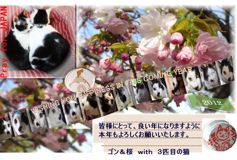 2011年は、なんと忘れがたい年になってしまったことか。年賀状に、「おめでとう」とはどうしても書けませんでした。どうか今年は、良い年になりますように!すっかり、サボリ人間になってしまっています。書きたいことはあるんですが...( ̄▽ ̄;)ゴンと桜は今年は9歳になりますがまだまだ元気&元気に毎日、ケンカしています。サボっている間にいくつか嬉しいことがありました。桜ちゃん三毛猫、ドンタコスちゃんちの下僕さんが素敵なバンダナを作ってくれました。コスプレ系が苦手な牛猫たちもなんとか着用してくれました。ドンタコス下僕さん、ありがとうー♪♪コスプレ気分が味わえたのは初めてかも。ケータイ写真しか撮れなかったけど、いつか、リバーシブルになった反対側もチャレンジしてみたいなぁ。むちステッカーmutio 徒然のむちこちゃんちからやって来たのは、ハチワレ猫、むちおさんのステッカーです。個人レベルで作ったとは思えない、ハイクオリティにびっくら!特に小さい方のは、反射し発光する素材で屋外仕様の防水強粘着になっているそうです。10月に中之島で出会った、秋田犬の主水くんの飼い主さんがブログに遊びに来てくれました。主水くんのブログは、コチラー!▼Le tour du monde47都道府県制覇を目指して日本中をウロウロする、壮大な犬の散歩。現在18/47!なのだそうです。ぽちっと応援してね~!▼にほんブログ村 MIX白黒猫中之島のスノーマン冬っぽい1枚・・・のつもりでしたが洋風雪だるまんは何かクリスマスぽいですねー。伊丹市鈴原町の迷子猫。ハイちゃん・15歳、2011年12月27日正午頃から迷子なんだそうです。▼【迷い猫・拡散希望】No.0104・兵庫県伊丹市鈴原町・ちょっと珍しい灰色と黒のシマ猫のお猫さま【胸元は白!】震災関連の募金年末を期に終了している募金も多々ありますが、継続中でかつ、太っ腹なクリック募金です。▼1クリック5円を寄付(募金先団体:特定非営利活動法人「ピースウィンズ・ジャパン」)ゆうゆう京都がアクセス数に応じて寄付(1アクセスあたり10円)日本赤十字社・あしなが育英会へ。クリック募金・ツイッター募金など、まとめました。▼震災関連、募金など