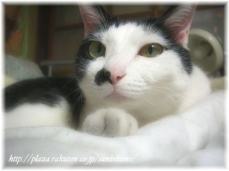《放牧風景/ゴン&桜》 2011/10/11前記事のお返事、書きました→★3匹目母のこと、心配してくれてありがとにゃ~♪♪もう、ひとりでスポーツクラブに行けるほどやねんで。腕枕する牛猫8月26日にケガで入院し、9月17日に退院した母。退院日は元気だったものの、その直後1週間くらいは日に日に具合が悪くなって、どうなることかとも思いました。しかし、その後は徐々に回復し、現在では、入院前の生活をほぼ取り戻しています。はみ出る、牛猫硬膜下出血を起こすほど、強くアタマを打っていたため入院中、認知症の検査もありました。2回の検査はどちらも大丈夫という結果でした。見舞いに来てくれたこと覚えていないのは、ICUせん妄なのだと思います。これはアルツハイマーとは異なり、一時的のものです。泥棒猫と、にこちゃん大魔王さる早朝に目撃された、スクープ映像!▼桜ちゃん少食な桜ちゃんが、まさか盗み食いをしていたとは…2ニャンで500gのカリカリが、だいたい5日で無くなります。お残しは捨てるし、7割方はゴンちゃんが食べてるし日に20~30gしか食べてない桜ちゃん。普段は何かトッピングしないと食べないワガママお嬢さんなのになぁ。盗み食いは蜜の味なんでしょうか??首からお手々が生えてるゴンちゃん。にこちゃん大魔王を思い出したよ。▼ゴンと桜は、似てないきょうだいですが私と姉も、似てない姉妹です。ところが父親似の姉も、だんだん母方の血が濃く出てきています。娘は年々母親に似てくるっていうけど、ホントなんですね。似てないきょうだい牛猫たちを、応援してね!▼にほんブログ村 MIX白黒猫オチリ連結現在、母の髪は軽い天パですが、若いころはストレートだったそうです。母方の祖父が、くるくる天然パーマで叔母様方もみなクセ毛。年をとると、だんだん直毛が巻き毛になっていく家系なのか。私も今はかろうじてストレートなのですが最近、くせ毛になりつつある気がする・・・血って怖いよぉ~~。被災地からのハガキ。少し前のことですが被災地からハガキをいただきました。1枚1枚、丁寧に手書きされたものです。ぶっちゃけ、2千円ほどの少額の支援なのにこれほど手間のかかった御礼状を頂いて恐縮なのでした。すぐに物資が被災地の人に届く、支援サイトです!▼ふんばろう東日本支援プロジェクトで、ちょっと、謎が。このハガキの表書き、宛名は私ですがなぜか住所が、「福岡県飯塚市~」になっていました。うしねこガーデンのおんぶバッタ飯塚市?えっと、私は大阪在住なのですが。ハガキは物資を購入した業者より封書で届けられました。その業者の住所は、「東京都港区」です。配送センターが九州だったのか?とにかく、よく、届いたなって思いました。そして、なぜに2通も?うしねこガーデンのツユクサ今日の写真は、うしねこガーデンの植物です。クリック募金いろいろ!▼キャンベルジャパンが1クリックにつき、1食分のキャンベルスープを被災地に届けてくれます。ブランドゥブラン1クリックにつき10円を、日本赤十字社へ寄付して下さいます。ゆうゆう京都がアクセス数に応じて寄付(1アクセスあたり10円)日本赤十字社・あしなが育英会へ。家庭教師のアルファ1クリックにつき1円を、日本赤十字社へ。ルルドコーポレーション1クリックにつき1円を、日本赤十字社へ。ピーエスシー1クリックにつき1円を、Civic Forceへ。森永チョコレート1クリックにつき1円を、プラン・ジャパンへ。花王グループ ピンクリボンキャンペーン1クリックにつき1円を、ピンクリボンでつなぐ絆プロジェクトへ。キャノンマーケティング1クリックにつき1円を、「ふるさとプロジェクト」へ。同額を被災地復興支援を行う、NPO,NGO団体にも。HEARTin(ハーティン)スポンサー企業が1クリックにつき1円を、NPOまたはNGO団体へ。現在、6企業が参加。ツイッター募金いろいろ!▼メッセージをツイートすると100円が、赤い羽根共同募金・日本赤十字社などへ。あなた自身が協賛することも可能です。マンフロット株式会社が好きな写真を選んでツイートすると100円が、日本赤十字社へ。(ひとり1回)ディップ株式会社スマイル写真を選んでツイートすると100円が、東日本大震災の被災地へ。(ひとり1回)「りん」さん1ツイートにつき10円を、「南三陸TERACO」へ。「菜園ヴィレッジ」さん1ツイートにつき5円を、「日本赤十字社岩手県支部」と「スコップ団」へ。アルソア1ツイートにつき1円を、支援物資を購入し東北3県へ。高島屋1ツイートにつき1円を、「乳がんをなくす ほほえみ基金」へ。サラヤ1ツイートにつき1円を、「ウガンダのユニセフ手洗い促進活動」へ。しょうたくんの朝顔小さな命、探しています。■宮城県石巻市 コーギーのこーくん■震災の日から行方不明のコーギー犬を探しています。▼犬 ウェルシュ・コーギー - Google Animal Finder 2011 東日本大震災東日本地方大地震 ブログ管理者の安否情報