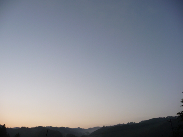 晴れてます・・・ お月さま、だいぶ低く・・・ そして、寒っ!! つ、ついにあまりにも暗くてフラッシュ発動! わたくしが確認したのでは今シーズン初の0℃! -5:00ちょい過ぎ- 実際は2・3℃ぐらい? 最高気温は昨日と同じく21℃とのコト! 晴れベースです。。。 ちなみに、昨日はあんなに朝焼けきれいだったのに・・・ 雨は降んなかったです! -わたくしは未確認-