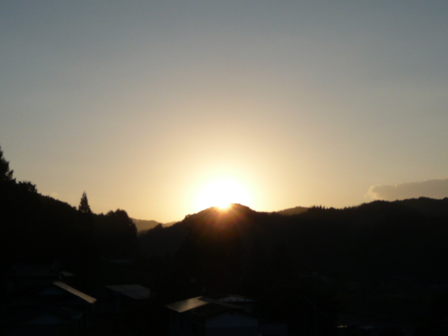 今日は日曜で作業所もお休みなんですが・・・ ちょうど、朝陽が眩しくて・・・ ⇒ ⇒ ⇒ ⇒ 5:25~45 朝焼けの時って予報ではいちにち中晴れってことだったんですが・・・ 最高気温は今日も昨日と同じく21℃とのコト!