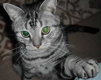 猫には縞模様があるけれど、犬には縞模様がない。猫はシッポの先だけ動かせたり、曲げ方を変えられるけど、犬には出来ない。犬も猫も威嚇および警戒で唸り声をあげるが、シャーと威嚇するのは猫のみ。この違いは、なんなんでしょうか?犬科の動物は群れで行動をするので、的から身を守るのも群れで団結します。ネコ科の動物は主に単独行動ですので、自分の身は自分で守るのが鉄則です。自分を襲う敵、主に上空を旋回する猛禽類から自分を守るための擬態行動が家猫にも受け継がれています。縞模様の体をグルリと丸くします。丸くなった所に綺麗に尻尾をしまい込み、尾の先を出し、チョロチョロと振ります。これは毒蛇であるガラガラヘビなどの擬態で、とぐろを巻いてる大蛇のようです。威嚇の時にシャーシャーと言う音も、ヘビが威嚇するとき及び攻撃するときのシャーーーーっと言う音にそっくりなわけです。犬の犬歯に比べ、猫の犬歯(牙)は細く先が尖っていて、やや長めの構造。シャーと叫び口をパカっと開いたその口元、ヘビに似ていませんか?噛みつくだけの攻撃だけでなく、ヘビが鎌首を持ち上げ、一瞬にして敵を攻撃する、あの行動と同じ事ができるのが、猫の前足です。鋭い爪を出し、瞬時に相手を攻撃するその様はヘビの攻撃と同じですね。ヘビの鋭い牙は折りたたみができます。猫の爪が出し入れできるのに似ています。勿論、主としては獲物の捕獲の為に使う爪ですし、出し入れの可能の理由は他にありますが、擬態の時にはヘビに化けることが出来る、大事な物でもあるわけです。私は毒蛇。私を襲うと大変なことになるよ。という、野生で身を守るための擬態の結果が、家猫が使い分ける様々な音や行動に受け継がれているのです。