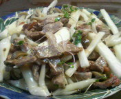 豚肉の方が安いからねぇ。。。。 豚肉と長いもの和え物 20分材料 4人分長いも・・・・・20センチしめじ・・・・・1パック豚肉・・・・・・150グラム梅干し・・・・・2個塩・・・・・・・少々コショウ・・・・少々「和え衣」だし汁・・・・・大さじ4酢・・・・・・・大さじ2醤油・・・・・・大さじ1作り方1.長いもは皮をむき5センチの長さに切り、さらに5ミリ位に切り少し濃いめの塩水(分量外)につけてぬめりを取り5~10分置いて塩味もつけ、ざるに上げて水気を切る。2.しめじは石づきを取り、小房に分け、さっとゆでざるに上げて冷まして塩、コショウします。3.豚肉にも塩、コショウして、熱したフライパンでさっと焼き、長いもと同じくらいの大きさに切る。4.梅干しは種を取り、少し叩いて「和え衣」と合わせる。5.ボールに長いも、しめじ、豚肉を混ぜ「和え衣」を加えて和える。来週の今頃は働いてるだろーなぁ。。。。やるべきことは今のうちに終わらせよう