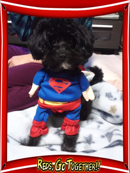 我が家では二人の子供たちが卒園・卒業それに伴い入学が2回ととても慌ただしいこの頃下の子が小学生になるにあたりお部屋を作ってあげてるのですが、これがなかなか進まないんですよね何が忙しいのか、一週間の半分以上出歩いてます家の予定が進まないのも当たり前だわ何だかくたびれて帰宅し、ポストの中にお届けもの発見ぐったりしながら開封するとちょっと元気になれそうな物が入ってました!可愛すぎて家族皆にいじられまくってたコハクでしたねっなんだか元気出てきちゃいそうでしょ因みにSサイズを購入してしまいましたが、Mの方が良かったかな?(コハクは前足床から頭まで23cm程です)頭が大きすぎて見えてバランスが悪い・・・(何等身??)後ろにマントがあるのですが、輪の状態の紐を首にかけているだけの状態なのですぐ前に回ってくるんです。今に破かれそうよそうなる前に何とか考えなければ・・・コハクが着ている衣装はこちらから見ることが出来ますよ3/3ドッグウェアTシャツランキング1位\(*^▽^*)/愛犬がスーパー可愛いスーパーマンに変身☆\...
