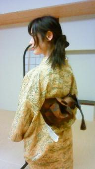 感動~~~着物って、、、浴衣でさえもただ立って、おばあちゃんや、美容院で着せてもらうものと恥ずかしながら100%他力本願のイメージで生きてきました昨日着付け教室3回目にして一応、全部着れました本当に一応ですまだぐちゃぐちゃで中心もズレてますが自分で最後まで着たという喜びはおっきいですYO~~~ちょこっとだけ公開・・・よぉ~く見ないで下さいね昨日は半幅帯で、いろんな結び方を教わりましたこれは刀流しでしたっけ??半分は流す、粋な結び方で気に入りました 帯は3次元でおもしろいですねどんな形になるのか想像しながら、作っていくのが。先生もメンバーも、楽しいし毎回、未知の世界で、教室の日が楽しみになって来ました結婚式やちょっとしたお出かけに自分で着ていけるようになるまでがんばるぞぉぉぉ~楽しみニャン