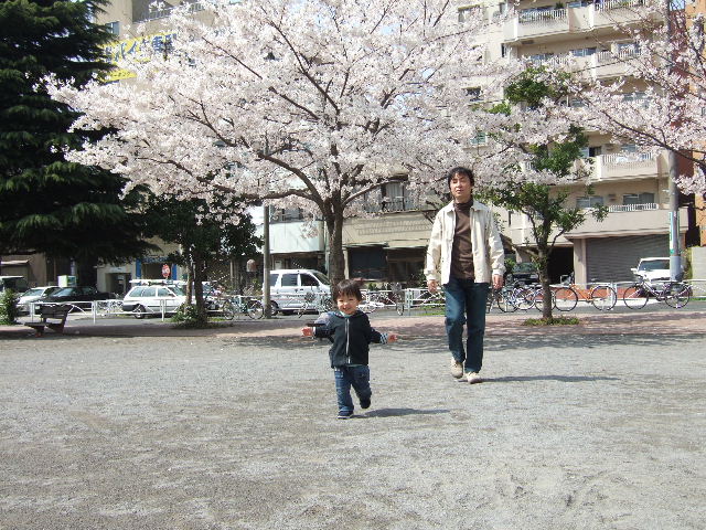 ねじねじ(夫)が銀座の山の楽器に用事(上野洋子さんのCD?を予約するとライヴにいけるらしい)があるというのでみんなでお出かけしました。ついでにお花見もしましょうか、という企画です。まずは駅の途中の公園です。いつもはお花見の人が多いのにほとんどいませんでした。はるちゃんがお昼寝から起きちゃったのでまた後で~。------------------------------------------駅の近くにも沢山桜が咲いていたのですが、このままお花見していると山の楽器にたどり着けそうにないので記念撮影だけにしました。はるちゃんとっても楽しそう♪無事に上野さんの予約が終わってホッとしたところで、近くの本屋さんでエリック・カールの世界とう展示会がありました。なんと無料でした。「はらぺこあおむし」日本語版の30年記念だそうです。「はらぺこあおむし」や「パパ、お月さまとって!」などいろんな絵本の原画や、製作過程やスタジオ風景のビデオ等大変充実した内容でした。自由に絵本を読めるスペースや書籍グッズの販売もあって大満足です。4月8日までらしいので興味のある方は銀座教文館へ行ってみてください。たまたま通りかかってよかった~。予定していた日比谷公園についた頃はるちゃんはお昼寝タイム。自然とたわむれることはできませんでした。エリック・カール展に長居しすぎたようです。はるちゃんも楽しんでたのでまぁいいかな。二人で遅めのランチを食べてビールを飲んでお花見して帰りました。桜の数はすくないけれど他のお花も沢山咲いてるし花見客(よっぱらい)も少なくてよかったです(笑)。そんな、もりだくさんな一日でした。