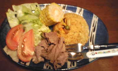 (↑次男くんの夕飯です。) 今日も暑いですね…今日は息子の習い事がある日息子から今日は迎えに来てね…とお願いがあったので迎えに行ってきました。いつもなら…約束の時間+15分当然今日も10分ほど遅く家を出ました。しかし約束の場所で待って待っても来ない…しかも来るのはみんな息子のお友達…なんて思っていたら携帯に電話がなんとすでに家に着いたようで…どこかですれ違ってしまったようですはぁ怒られましたよ…約束の時間に来ないと…さて…ここ最近暑くなり、すっかり食欲が落ちてきました。特に我が家の次男くんはご飯を食べなくて困ってますそこで…今日はカレーピラフしかもワンプレートにしてみました でも…やっぱり量が多かったみたい明日の夕飯何にしよう…困ったわ。