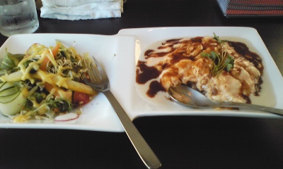 こんにちは。この間お友達のコパンさんとランチへ出掛けてきました。ここのお店名前は忘れてしまいましたが…雄踏にあるオシャレなお店でとっても混んでいました!!!おまけにここのお店のオムライスとっても美味しい!デザートには大きなシフォンケーキを頂きました。