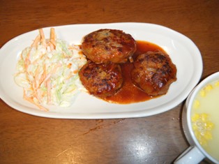 こんばんは。今は旦那さんが出張中。夕飯は子供の好きなおかずになってしまいます冷蔵庫を開いてみると…玉ねぎとキャベツと人参…これで思いついたのがハンバーグ子供の習い事に行っている間に、玉ねぎをみじん切りにして炒めて、冷ます!使いきれないキャベツ、人参、玉ねぎはみじん切りにして、少し塩もみ、洗って水を切りマヨネーズ、酢、砂糖でコールスローを作ってみました子供のお迎えに行った後、早速ハンバーグ作りミンチ肉に卵、牛乳に浸したパン粉、玉ねぎ、塩、コショウを混ぜてコネコネ…。味付けは何にしようかと考え今回は煮込みハンバーグにしてみました。味付けはケチャップ、ウイスターソース、赤ワインに水煮込んで出来あがり…。あるもので出来たな…と思ったら子供は見て一言…。僕野菜嫌い…ハンバーグについたマヨネーズが嫌いと本当に困ったものです。誰か作って…と言いたい!
