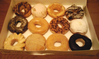 ジャーン!ドーナツです。並んで買ったドーナツ。どんな味かと思ったら…若干甘くて美味しい。私的には右側の一番上が一番美味しいです。 このドーナツを買った頃名古屋駅前は雨が降り出しました。旦那さんのアパートによってドーナツを食べてから浜松へ帰ったのですが…高速道路にのってしばらく走ると豊田で渋滞。ほとんど進まずここを抜けるのに1時間以上かかりました。やっと抜けた…と思っていたら大雨が降ってきて、おまけに霧。前が見えなくて怖い。とにかく前の車についていくしかありませんでした。