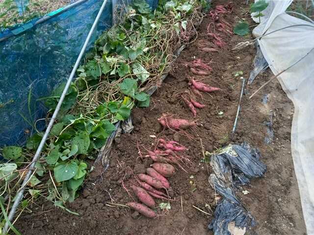 こんにちは。今日は晴れです。今日は○サツマイモ○です。△サツマイモ△実家で借りている畑でサツマイモを栽培していますが一番早く植えた列の1株をため絞りしました。ちなみに苗は昨年の芋から芽出しして採ったものです。蔓の育ちが悪く、少し、植え付け時期が遅くなっています。猿にやられないうちに掘らなくちゃと思っています。△サツマイモ△品種は紅あずまですほくほく系列です。1株でこんなにいっぱい取れました。暑いとやっぱり芋の太りが早いのでしょうね。少なくともため絞りでは豊作の予感がしますね。たくさん植えた里芋が食べられて残り少なくなってきました。網の中で育てていた里芋が食べられてしましました。残念です。破られた網は修理しました。今日は久しぶりの晴れなのでラッキョウと分葱の球根を植え付けました。9月に蒔いた菜物はほとんど全滅です。大根と白菜はちょっと残ったかな。引き抜かれていたネギとジャガイモは再度植え付けました。だめかもしれないですが、植え付けました。ヒラサヤインゲンと菊芋(試し掘り)を収穫しました。大きさは少し小さいくらいですね。今日の日本株はPF502千円(前日比+1千円)でした今日の取引はありませんでした。今日の予報は最高気温24℃、最低気温17℃です。作業するにはよい季節になりました。今日もつたないブログに来ていただきありがとうございました。「花、ガーデニング」「菜園」部門に登録しています。ガーデニング初心者ランキング家庭菜園ランキングにほんブログ村↑一日1回クリックして戴けると嬉しいです。家庭菜園サツマイモ試し掘り