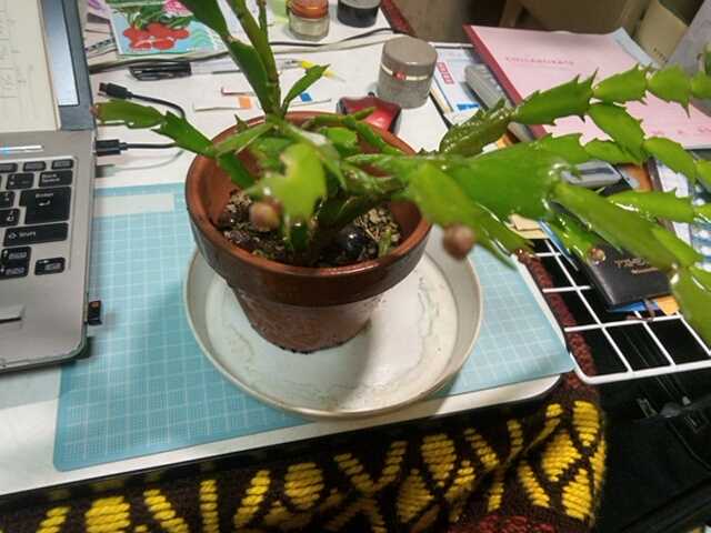 こんにちは。今日は晴れのち曇りのち雨です。今日は○シャコバサボテン○です。△シャコバサボテン△品種はクリスマスカクタスです。葉先にあずき大の蕾が出てきました。今の時期は鉢を動かすと蕾が落ちます。ですから雨に当たっていましたが撮影のために室内に入れました。すぐに元の位置に戻しています。うまくいけば11月末には開花します。△シャコバサボテン△予備としても何鉢かあるのですが、子供が生まれた時に記念樹として私が産院からいただき、挿し挿し芽したものです。以来35年以上育てています。基本的に日本の気候とは合わないようですね。根がすぐ腐ってしまいます。夏の管理がとても難しいですね。基本的には予備を作っておくことです。葉がすぐに虫に食べられてしまいます。ナメクジとダンゴムシです。困ったものです。今日はテラスの掃除に半日かかり、雨も降ってきて残りの朝顔撤去は延期することにしました。隣家の人も孫の運動会が延期になったと。中止でなければ良いですよね。今日の日本株はPF579千円(前日比-7千円)でした。今日の取引はありませんでした。三菱ケミカルがマイナスに転じました。今日の予報は最高気温20℃、最低気温12℃です。午後から雨で寒くなっています。今日もつたないブログに来ていただきありがとうございました。「花、ガーデニング」「菜園」部門に登録しています。ガーデニング初心者ランキング家庭菜園ランキングにほんブログ村↑一日1回クリックして戴けると嬉しいです。花シャコサボテン