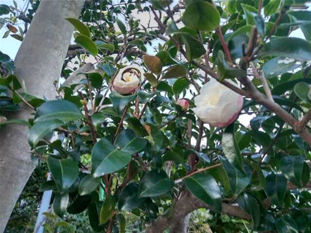 こんにちは。今日は晴れです。今日は○山茶花○です。△山茶花△庭の山茶花はカップ咲きの朝倉という品種です。家を建てた時に植えた生垣の山茶花です。この1本だけは庭木に仕立てようと大きくしました。いわゆる玉仕立てという仕立て方に挑戦しました。樹高5mくらいで今棚作りをしているところです。今年はチャドクガの発生が多くて大変でした。生垣はだいぶスカスカにしました。11月いっぱいで花も終わります。冬の代表花のように山茶花の宿がうたわれていますが我が家の山茶花は冬の入口で花が終わります。複雑な気持ちですね。△ツバキ△玄関前のツバキがつぼみをいっぱいつけています。子供が幼稚園の時、種をまいたものを育てました。それに枝接ぎをして2種類を咲かせるようにしたものです。赤と白で紅白です。椿にもチャドクガがいっぱいつきましたね。妻からは私が死んだら樹は切りますと言われています。特にチャドクガは嫌いなようですね。今日の日本株は休みです。今日の予報は最高気温20℃、最低気温11℃です。酢kし暖かっ感じました。また寒気がきそうですよ。今日もつたないブログに来ていただきありがとうございました。「花、ガーデニング」「菜園」部門に登録しています。ガーデニング初心者ランキング家庭菜園ランキングにほんブログ村↑一日1回クリックして戴けると嬉しいです。花山茶花椿