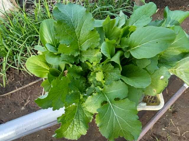 こんにちは。今日は晴れです。今日は○菜物の収獲○です。△菜物野菜△野菜がバスケットにいっぱいになりました。入っているのは小松菜、青梗菜、からし菜、中葉ニラです。菜物は間引き菜です。大きくなったものから収穫していっています。普通は間引くのは小さなものですが大きい物から収穫することで長い期間収穫できます。△春菊△まだ発芽したままでほとんど大きくなっていません。1週間くらいたっているのですが・・・。日の当たりが悪くなってきているのかもしれません。△手前から小松菜、青梗菜、からし菜△収穫した後の畝の様子です。適当な間隔で隙間が空いていますよね。△ホウレンソウ△西洋ホウレンソウのオータム法蓮草です。こちらも双葉のままで大きくなっていません。今年はホウレンソウがなかなか発芽しませんでした。5回目くらいでようやく発芽しました。適期の時期が来るとやはり発芽しますね。△大根△耐病総太とおでん大根です。一部虫に食べられてしまったところにはホウレンソウを蒔いておきました。△サニーレタス等△サニーレタスやビーツ等を植えています。苗としてナスの黒マルチをそのままにして黒マルチに植穴を開けて植え付けています。今年初めてナスやピーマンの根を撤去しないでコンパニオンプラントのニラもそのままで残肥で育てています。今日は寒くなってきたのでビニールマルチしました。ビニールの厚さが薄いのが気になりますが何もないよりは育ちが早くなると思っています。今は暑くなりすぎないよう端の上部に切り込みを入れ通気性を確保しました。寒くなれば塞ごうと思っています。果たしてどうなることやら・・・。ネギに追肥して土寄せしました。順調に太くなっています。今日は、妻の免許の書き換えで講習に連れて行きました。私は時間つぶしで近くのホームセンターで花の苗を見ていました。ビオラの苗も指定で98円でした。当然、高いものは248円でしたがね。手が出ませんでした。来年は種を蒔こうと思いました。今からは遅いかな?今日の日本株はPF592千円(前日比+3千円)でした今日の取引はありませんでした。今日の予報は最高気温16℃、最低気温8℃です。最低温度が10℃を切りました。今日もつたないブログに来ていただきありがとうございました。「花、ガーデニング」「菜園」部門に登録しています。ガーデニング初心者ランキング家庭菜園ランキングにほんブログ村↑一日1回クリックして戴けると嬉しいです。家庭菜園葉物野菜小松菜、青梗菜、からし菜ニラネギ