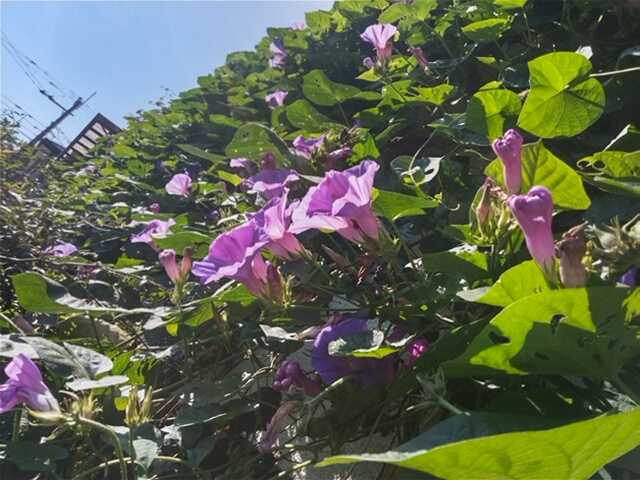 こんにちは。今日は曇り時々雨です。今日は○琉球朝顔○です。△琉球朝顔△家の前面を覆った琉球朝顔が元気です。地面から撮影するとこんな感じです。今年の夏も暑かったので日よけとしては最高でした。今頃にあると花が咲きなおしてくるので終わりは霜が降るまでと言いたいのですが私が太陽が恋しくなるまでとしています。基本的には全部取り除きます。△琉球朝顔△全体ではこんな感じです。南面全面が朝顔で覆われています。2階のテラスはキュウリネットを張り葉で覆われています。お化け屋敷のようですね。これだけ草勢の強い朝顔はありませんね。玄関わきで育てている甘夏にも絡みついて行くので時々切り取って木の光合成を妨げないようにしています。それにこの朝顔は千葉県ぐらいの地では越冬できるので宿根草扱いですね。毎年、蔓が太くなっていきます。それとともに耐寒性も増してきたように思います。△マラコイデス△プランターに発芽したマラコイデスが少し大きくなってきました。植え替えすれば、大きな株に育つでしょう。家の周りはほとんど枯葉で覆うようにしたのでなかなか昔のように発芽して育つことが無くなってきました。もう一つは、段ボール敷き詰め除草をし始めたのでこぼれ種の発芽がしにくくなっています。今日の日本株はPF509千円(前日比-3千円)でした。今日の取引はありませんでした。今日の予報は最高気温26℃、最低気温21℃です。今日は涼しかったです。今日もつたないブログに来ていただきありがとうございました。「花、ガーデニング」「菜園」部門に登録しています。ガーデニング初心者ランキング家庭菜園ランキングにほんブログ村↑一日1回クリックして戴けると嬉しいです。花琉球朝顔マラコイデス