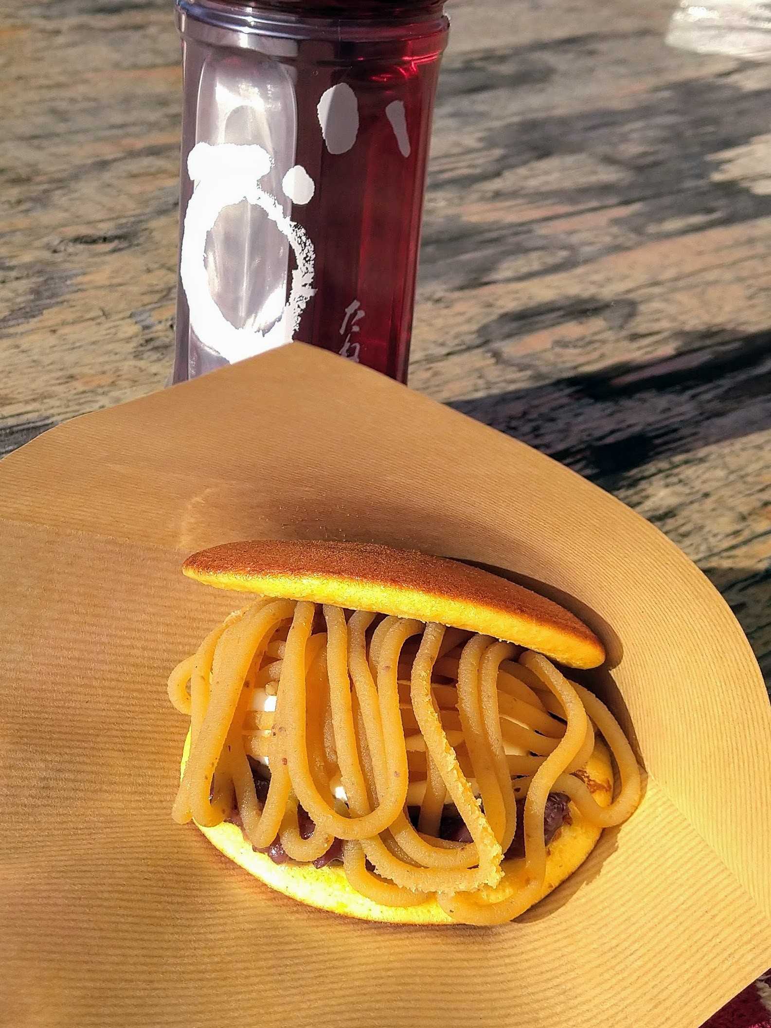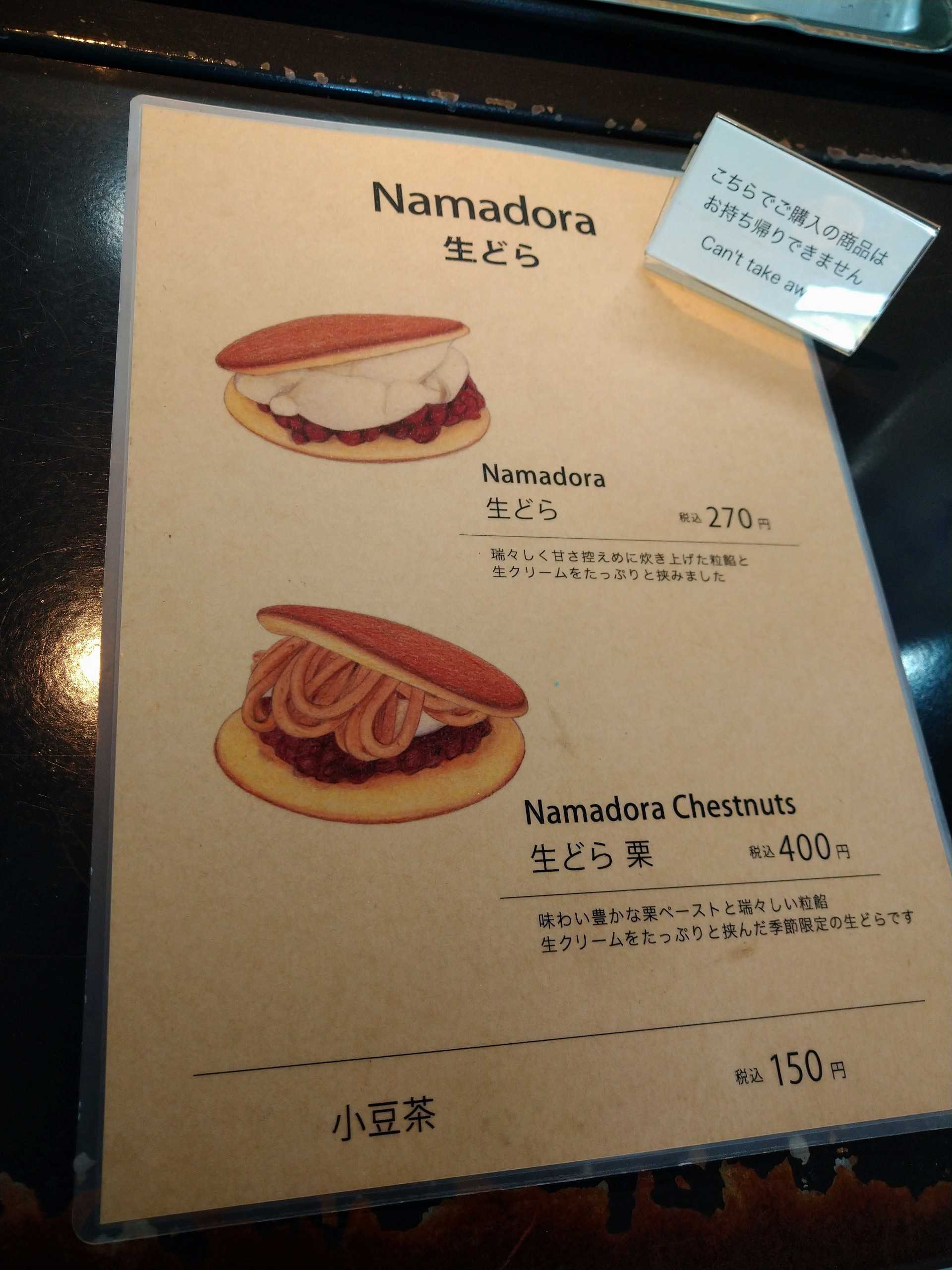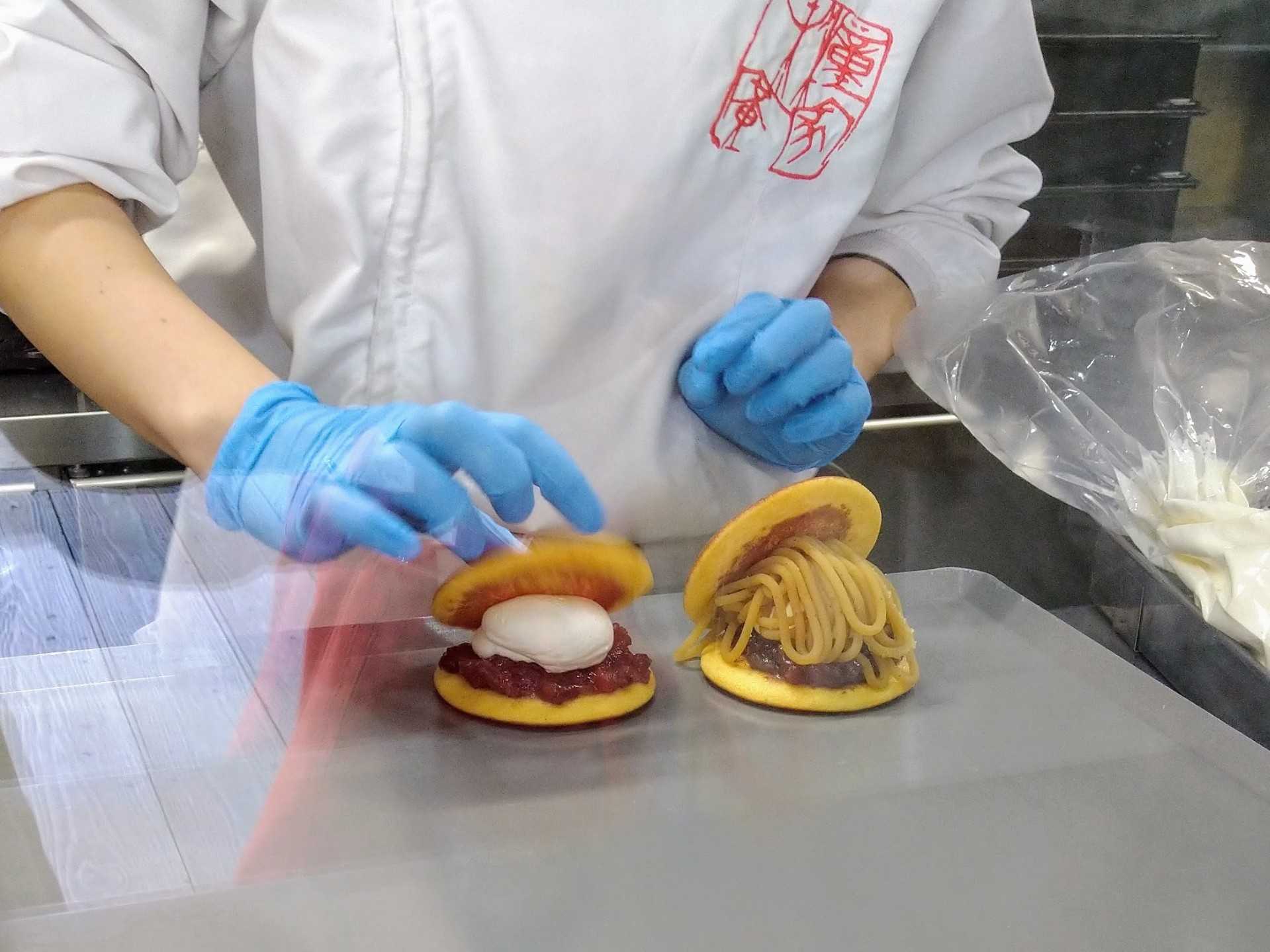 オーダーしてから、焼きたてのどら焼きの皮に、つぶ餡×生クリーム×栗ペーストを挟んでくれます。