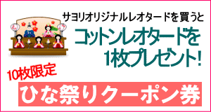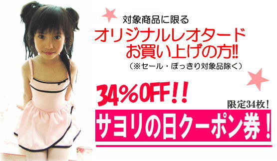 毎月3・4日はサヨリの日 今月は普段、なかなか値引きにならない 日本製*高品質レオタードを お安くご購入いただける 【クーポン券】を34枚ご用意しています レオタードプレゼントにも応募してね
