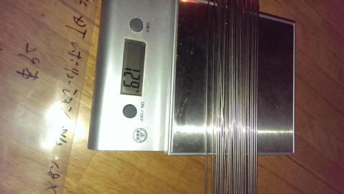 星スターブライト15/16段付きは磁石への付きは抜群で結構軽いのでNJSエアロも同じくらいの重量ならカットした物を使えば安くなかなかいいホイールが組めるのではないかなと思い立ち、重量測定のサンプルとして二本だけ試しに入手長さはカットしていないので305mm(この長さは競輪用ハブとリムで36H六本組をする時のスポーク長という事でしょうか)2本 12g一本だけで測っても6gサンプル数は少ないですが、1mm当たりの重量は0.0197g星15番プレーンとほぼ同じこの重量から見ると、NJSエアロは15/16段付きを扁平にしたものではなく15番プレーンを扁平にしたものでしょうか。スポークヘッドの刻印は「H」で磁石のくっつき方は星のスターブライトと同じく強力なのでスポーク折れしにくそうですが、今の自分の用途(軽量さ優先)ではとりあえずすぐの出番はないか(スターブライト15/16を扁平にしたのがあれば使ってみたいが)ハブのスポーク穴(丸穴)にはすんなり通りました(スポーク穴の小さいデュラハブではまだ試していないですが)重量測定パーツ税込10,800円以上は送料無料/星スポーク #15×305mm エアロスポーク NJS認定品 72本セ...価格:4,526円(税込、送料別)
