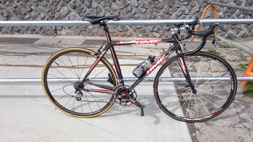 富士ヒルクライムで使用したVXRSの機材詳細をメモ車重6.1kgフレーム VXRS初期モデルサイズXXSヘッド 付属品フォーク 付属品ピラー 付属品ハンドル リッチーロジックカーボン420mmバーテープ無しステム リッチー4AXISクラシック90mm左ブレーキレバー デュラエースBL-7402前シフトレバー デュラエースSL-7900右STI デュラエースST-7800サイクルコンピュータ ステルスエボ51ボトルケージ タイムカーボン一個ブレーキ前 デュラエース BR-7800後 ディズナバンテージサドル フライトカーボンレールFD デュラエース FD-7800直付クランク タイムASX TITAN 50*34アウター アルテグラSL6650 50Tペダル デュラエース PD-9000 クリートは可動黄色チェーン デュラエース CN-7901+ミッシングリンク 104リンク レース前に交換チェーンオイル AZ BIc-007RD デュラエース RD-7800SSスプロケ デュラエース CS-7900 11-23ホイール前輪 ボントレガーXXXLITE後輪 デュラエース WH-7850C24TUタイヤ前輪 ヴィットリアクロノCS 20mm後輪 ヴェロフレックスレコード前後ともリムセメント使用レース前に交換クイック 前後ともXXXLITE付属品後ろブレーキとタイヤ以外はロードレースでも使用できる剛性のあるものを選んでいるつもり。今回のコースなら前39Tでもスプロケは軽量な11-23を使ったでしょう。