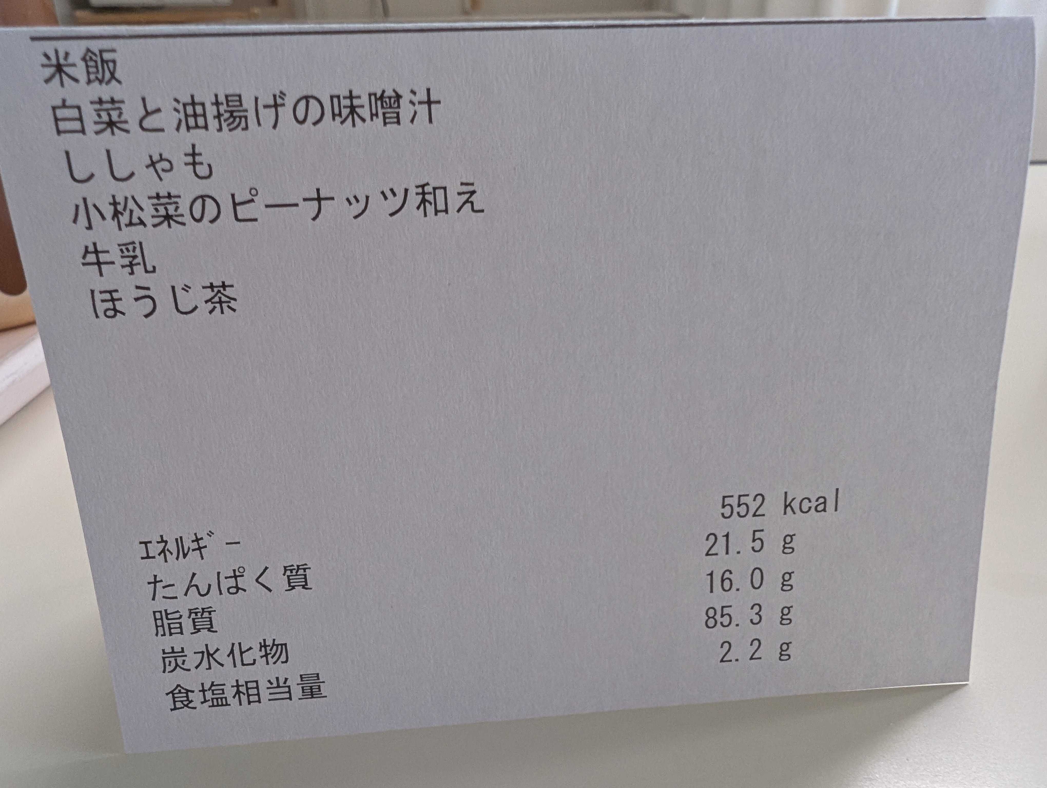 食塩相当量2.2だが食事全体量がかなり少ない今回のような場合は十分な味付けになるということか。