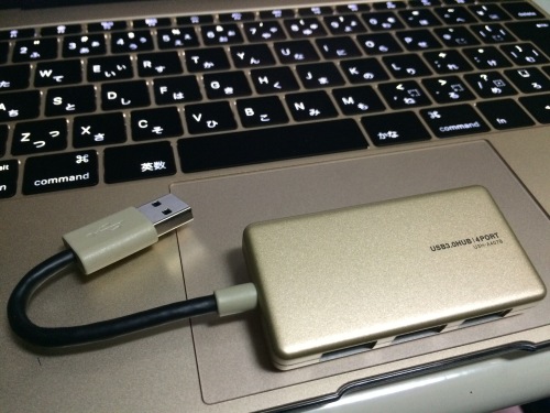 実際始めのころは、このアダプタでUSB3.0ハブを介して、外付けHDD・USB Ethernetアダプタ・スーパーマルチドライブ・iPhoneなどをつないでた。