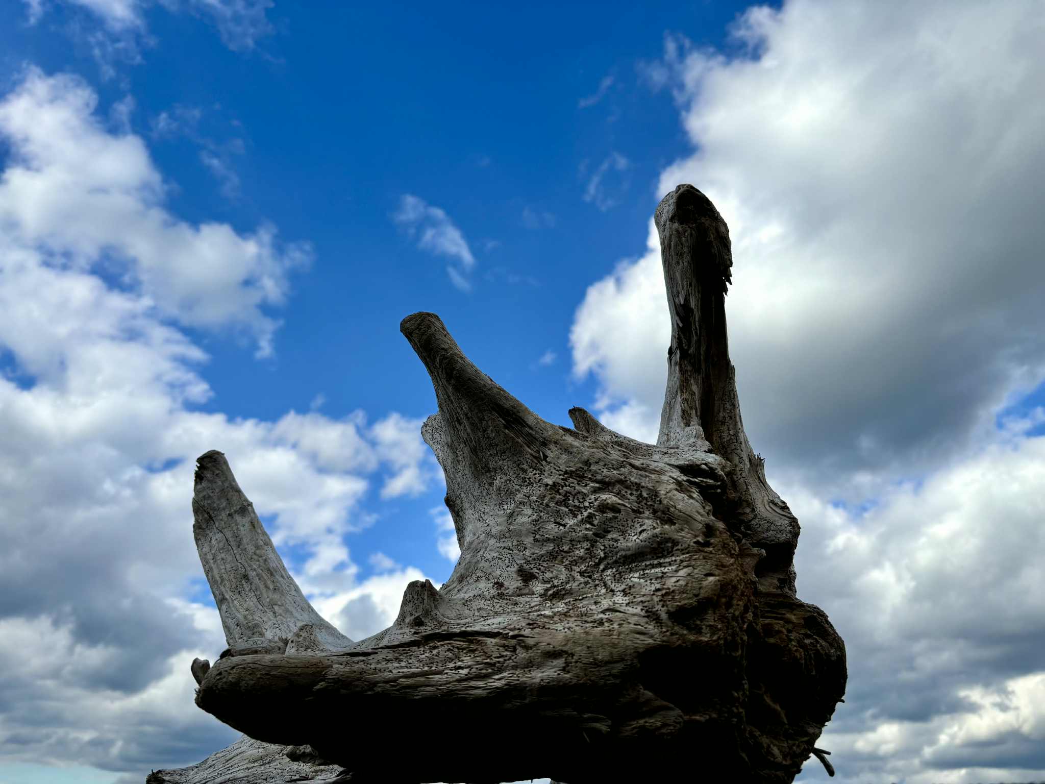 間崎島の港で、サイの頭を見つけた。流木は何の形にも見える。その日その時の気分によっても違う。まるでロールシャッハテストのように...。みんないっぱい経験して、みんな自信を持って強くなれ~!やろうと思ったら何でもできるよ!おもしろがろう!楽しもう!