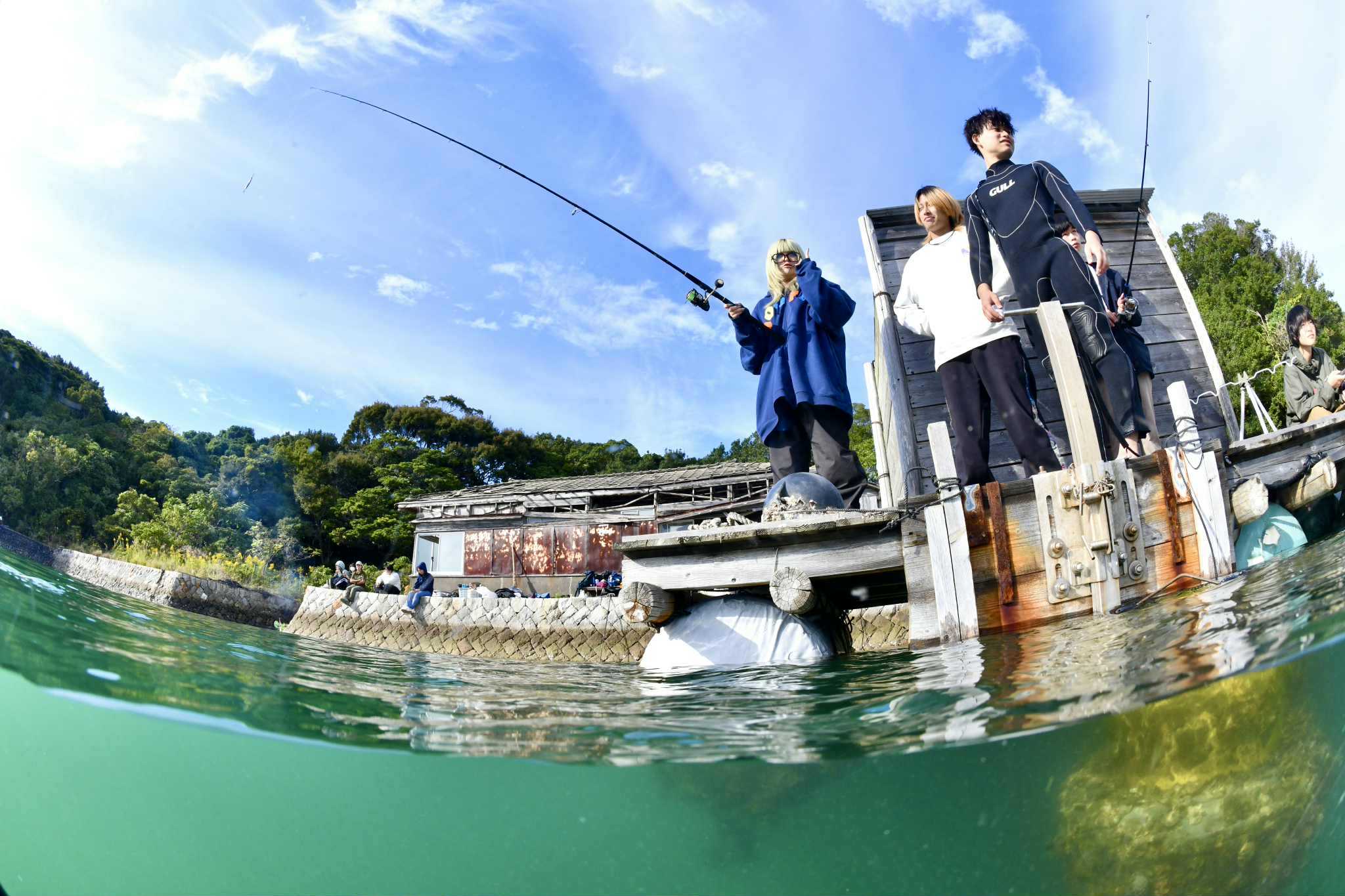 使われなくなった真珠の廃小屋が…。立食レストランに生まれ変わった!置かれている古い道具を片付け、筏を浮かすバールを土台にして、テーブルを作成した。捕って来た魚や貝、いただいた魚や蟹を料理する。働いた後は、皆で料理を囲む。みんなで一緒に料理をして、みんなで一緒に食べるのは、コロナ禍以降初めてかも知れない。まさに「同じ釜の飯を食う!」やっぱりいいな。