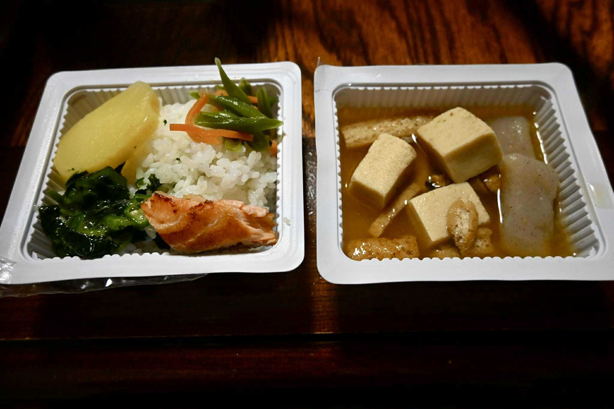 ごみを出さないように!使い捨ての皿やカップはダメ!自分の容器を持って来なさい!持ってくるのを忘れるな!そう学生たちに注意しながら、自分が忘れてしまった...(苦笑)どうしようもない。豆腐のパックを使った器!これぞ究極のアップサイクル!リサイクルでもリユースでもない。ごみを別の物に生まれ変わらせる。ごみに価値を付ける(笑)実習中の3日間、器として大活躍してくれました!