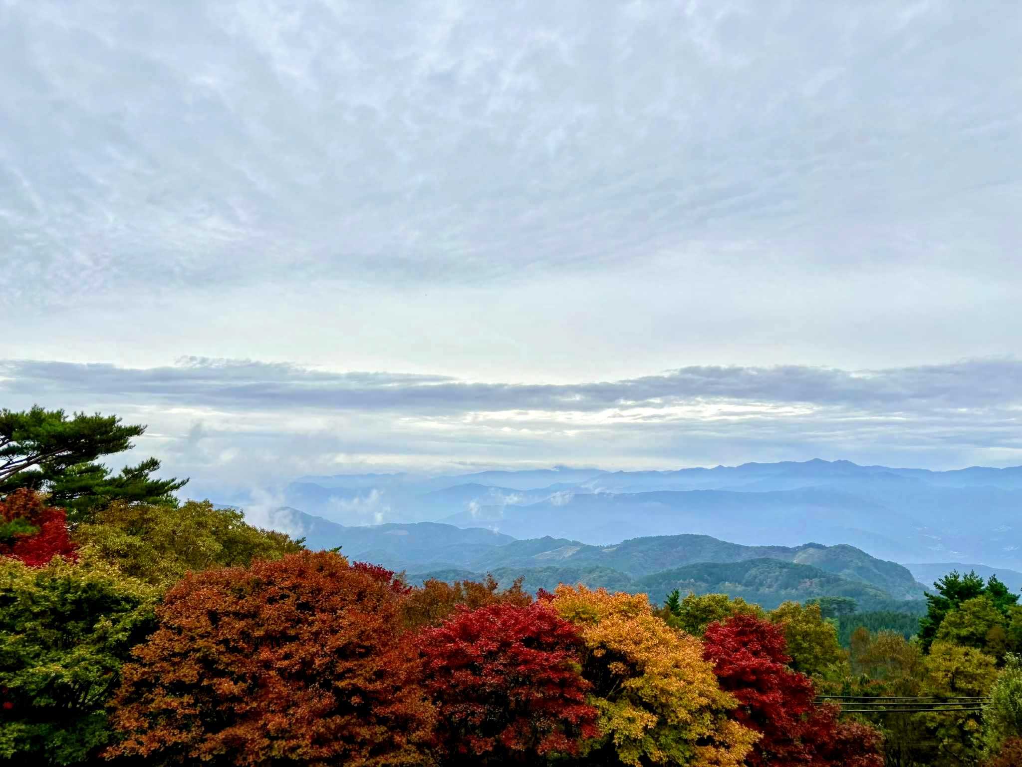 霧の深い森から始まったが、翌日のお昼前には見事に晴れた!ついこの前まで暑かったのに、山々はすっかり色づき始めた。いつの間にか秋も深まってきたな。
