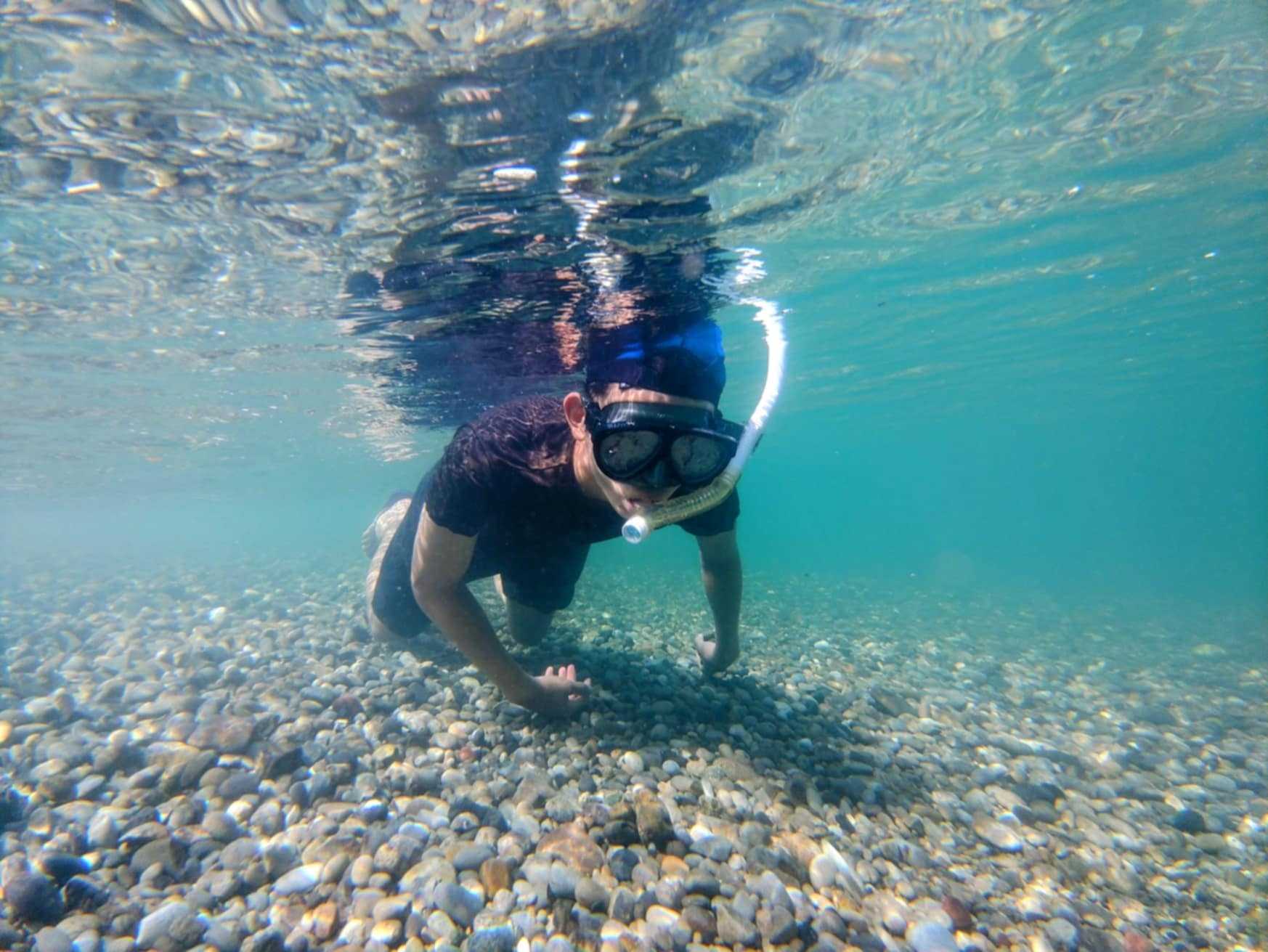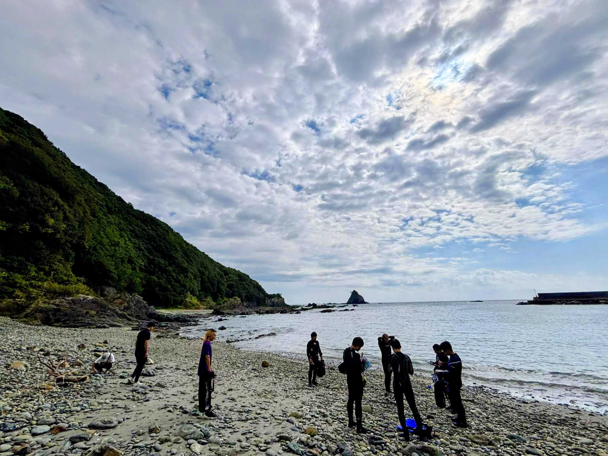 午前中は市場に行く予定だったが、漁に出られないので、水揚げがないらしい。事前に仕入れてくださった魚を使って種の同定について学んだ。お昼頃には海も落ち着いてきた。濁りはあるものの、シュノーケリングはできそうだ。学生たちは海へと入って行った。ここでも卒業生が活躍していて頼もしい。全国各地、海外で活躍している卒業生たちを応援したい。