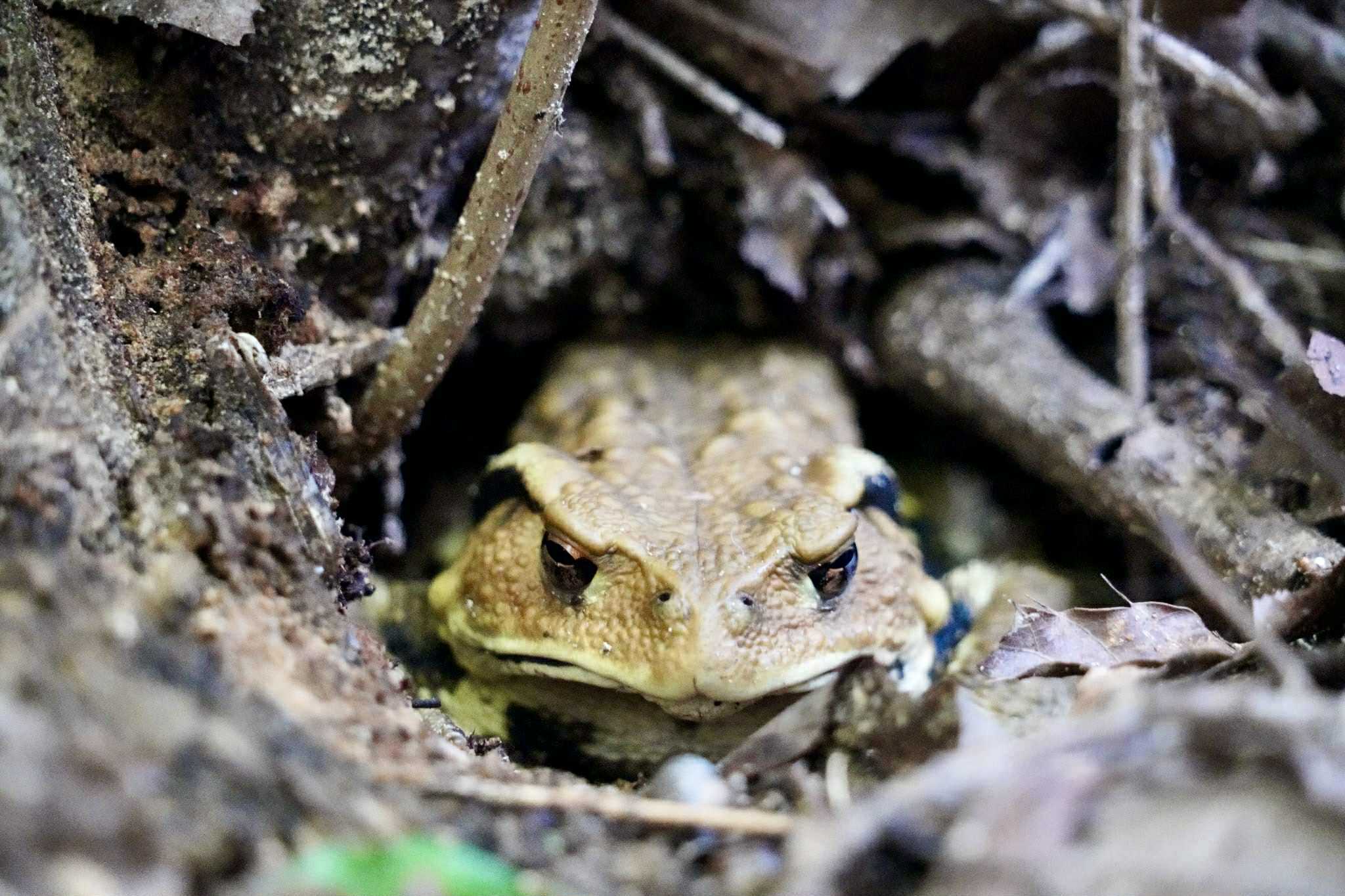 大きな木の根元に、森の主がいた。最近、森の守り神が出没して、各地で悲しい出来事が多発している。森が怒っているのか…!?今年は特に異常である。この森の主は穏やかな感じ…。冬眠間近なのかな。 ちょっと眠そうやね。