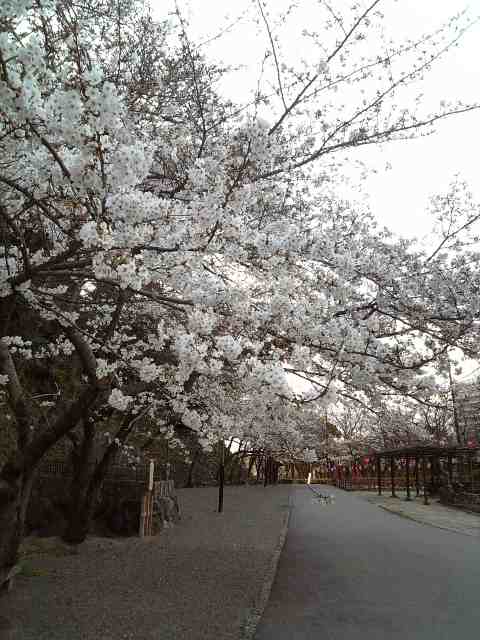 セイラと散歩の帰りにちらっと、桜を見に行きました。かなり、咲いていました。↓こんな感じで。。。更に満開になると、夜店が出て人が集まり、夜でもすごいにぎやかになります。私は、桜吹雪の中を散歩するのが大好きです。しだれ桜を激写している私とそれを見ているセイラです。