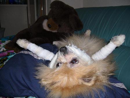 手、というか、前足?に包帯巻いたのでこんな写真になりました。気分が沈んでいても、こういうのを見ると、元気になります。