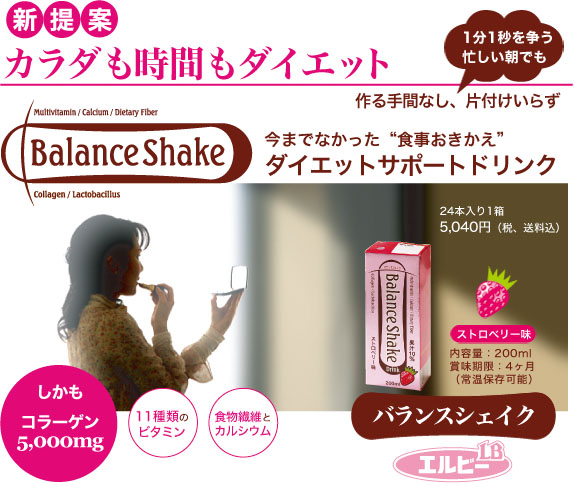 お腹の周りが気になって、大豆クッキーやらビリーやら試しています。ビリーは、今でもたまにキャンプインしています。汗をかいてすごく爽快です。クッキーは、ちと、無理でした。お腹空きすぎ~今回は、モラタメでアサヒビールグループのエルビーから5月12日ネット限定新発売される「食事おきかえダイエット」のバランスシェイクを試してみることにしました。コラーゲン5,000mgを含んでいるそうです。”コラーゲン”って単語に弱い私です。えへ(=^・^=)送料の630円のみ負担で200円 6本を試せます。お腹の周り、夏までにすっきりしたい(((o(^。^)o)))