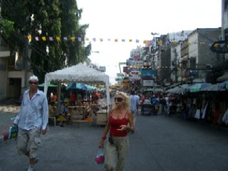 4日目朝9:00頃起床今日も朝食ブッフェにありつける。そして朝食を済ませ一度部屋に戻る。バンコク旅行で押さえておかなければいけないポイントは一応もう全部押えたつもりの俺は今日はゆっくり市内をフラフラしようと考えていた。無いよねぇ?他に。一応大雑把には見たよねェ?まあ、そりゃあ細かいこと言えば他にもいろんなとこあるだろうけどサ、、、というわけで突っ込みは受け付けません。10:30くらいまでボーッとテレビを見る。相変わらずタイ語は何を言っているのかサッパリわからない。そういえばここまででまだ2回くらいしかタイ語を使ってない。しかもそれはマッサージ師やお店の人に冗談交じりで挨拶をした程度。たぶんこの旅行で少しくらい話せるというレベルになるのはもう無理だ、、、なんせ全日程で5日間しかないんですもの!今まで話したタイ人や白人からはいつもベリーショートと言われていました。イヤ、白人とは1回も会話はしてない。嘘はいかん。しかし、たしかにベリーショート。あんまり言われると男の子としては違う意味で勝手に傷つくが、日本人の休みは平均して短いんだな~と感じさせられる。まあいろいろ考えてても短い休みの時間がもったいないので今日は日本人らしくお土産を買ったりしようとも思う。しかしもうお金もあまり無い。ガイドブックを見ているとどうやらカオサン通りというとこが比較的物が安いらしい、ちなみにここはバックパッカーの聖地とか書いてある。俺はバックパッカーではないがバックだけバックパックなので一応聖地に顔を出さなければ。よし、いざ出発!!まあ当然、着替えしか入ってないバックパックは部屋に置き去りに、、、BTSに乗りサイアム駅に行き、そこから面倒くさいんでタクシーで向かう。向かう途中、タクシーの窓から1日目に散々歩いた路地などが見えた。ついこのあいだのように記憶が蘇る。というか実際についこのあいだだ。現在地がイマイチ把握しづらくなった頃にカオサン到着!通りは歩行者天国のようになっていて、此処も基本的に白人で賑わっている。フラフラ歩きYラモーンなどに適当にお土産を買う。散々みたがキリが無いし、帰りの荷物をバックパックに収まる位に押えたいと思ったので申し訳ないが日本の友達にはお菓子かインスタントラーメンにさせてもらうことをここに決定!自分にも何かをと思い歩いているとCDの露店があったので覗いてみる。そうだレゲエ好きの友達サダムスFにタイレゲエなんか買っていってみようかと思い探したがどうやら置いて無さそうなので諦める。すまんがサダムスFにもインスタントラーメングループ入ってもらう、、、ちなみに自分には2枚ほど買いました。そろそろ腹が減ったので何か食べようと思っていると屋台で焼ソバのような物が売っている。パッタイというらしい、今までタイフードには負けっぱなしだが、名前は聞いたことがあるのでチャレンジしてみる。う、ウメェ、、、旨すぎる!!しかも20Bとかなり安い!一皿食べたら完全に食いしん坊スイッチが入ってしまいもう1回食べることに。どうせならと思い別の屋台で再びパッタイを買う。同じく旨い!!ここにきてようやくタイフードに勝った!いや、ある意味俺のノックアウト負けだ、、、パッタイを食べて喉が渇いたので屋台でオレンジジュースを買うこいつもウメェッ!!というか今まで俺が飲んだオレンジジュースで間違いなくナンバー1だ!もっと早くこの2つに出会っていれば良かった、、、いいかげん歩き疲れたんでナナへ帰ることに、タクシーを捕まえ乗る前に行き先を告げると「ノー」とつれない返事。一方通行の多いバンコクは面倒くさいと乗車拒否というのがわりとあるらしい。仕方なく通りの反対側の出口まで行きそこで捕まえる。タクシーでサイアムまで行きそこからBTSで我が地元ナナへ!!ホテルに戻り風呂に入りケバブ屋へ!!今日はバンコク最後の夜、つまり最後のケバブ、、、最後はチキンを選んだ。ちなみにここの店(店といっても機会と椅子3つ)、ムスリムのオバサン、ベテラン青年、新人青年がいて常時2人体制のローテーション。メインの調理はオバサンかベテラン青年なんだけどラッピング役に時々新人青年が入る。当然慣れてないようで具がこぼれるこぼれる、そしてこぼれた具を素手で押し戻す、、、どうやら今日はベテラン青年と新人青年のタッグのようだ、、、新人青年の手のエキス入りのケバブを貪り食う。相変わらず旨いなあ。ケバブ屋に別れを告げしばらく散歩この風景とも今夜でお別れ。いつもより遠くに来てしまい暗い路地を歩いていると焼き鳥やフルーツの屋台が並んでいた、その中のフルーツ屋の少年が声をかけてきた「こんばんは~!パインとかあるよ~!あと▲×☆■」どうやらその後の英語が続かないらしい、とりあえず熱意に負けて気の弱い俺はパインだけ買った。これも旨い!今日は当りの日だね~!最後だけど、、、歩き疲れたんで、オープンバーで軽く飲みタイマッサー