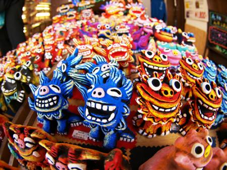数あるシーサーの中で、特にお気に入りのモノ。最近では、空港内のお店や国際通りでもよく目にするようになりました。石垣島の米子焼工房の作品です。少しずつ色合いや形が微妙に違うので楽しい♪見ていて飽きません。ねっ・・・カラフルでかわいいでしょ♪wwwネットでも購入可能ですが、微妙な形・色合いの違いがあるので、やはり現地で手にとってみるのがオススメ。参考までに。。。米子焼工房〒907-0451沖縄県石垣市米原447TEL:0980-88-2559FAX:0980-88-2677ちなみに。。。写真は、海人工房 那覇店にて撮らせて頂きました