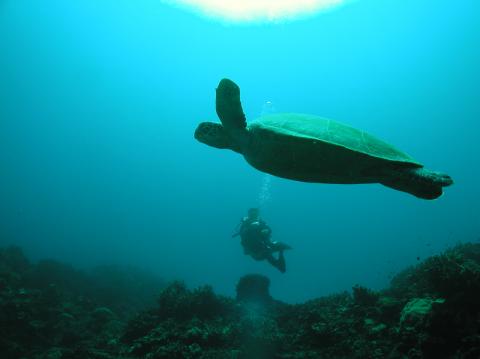沖縄に行っておりました。1日だけダイビング慶良間に行って来ました。天候は良好。気温24℃透明度も言うことなし♪青ウミガメ君が遊んでくれました。ちなみに、↓こちらは撮影中の僕(逆さまになっているのがそう)です。で・・・撮ったのが上の写真です(笑)ポイントは、座間味カミグー