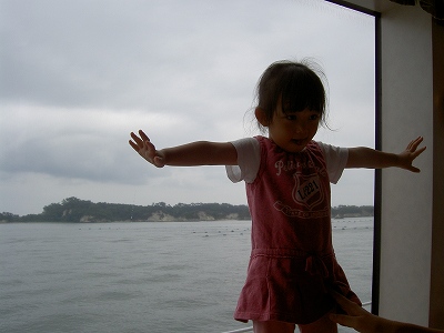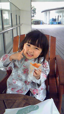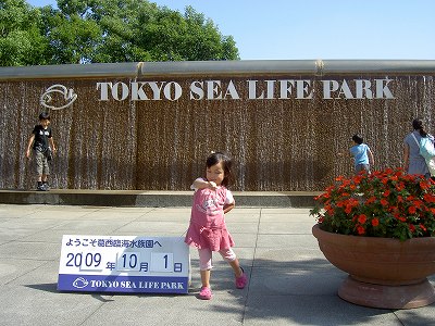 今日は都民の日で、多くの施設が無料開放。そこで、葛西臨海水族園へ行ってきた予想以上の混雑に驚いた着いたのが11時半だったので、とりあえず腹ごしらえ。後ろにディズ二ーランドが見えるんだけど、写真ではわかりづらいかも。あーちゃんのこのポーズはアリエルのつもりらしい。都立なので、ショーとか派手なものはないけど、なかなか楽しめました