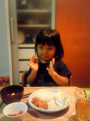 あーちゃんはえびフライが大好物お膳をだしたら、もくもくとえびフライを5本、一気に食べちゃった。そして、一言。「ママ、気持ち悪い」そりゃ、そうよ。ママは4本で十分だったもの。揚げ物はほどほどに・・・