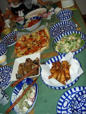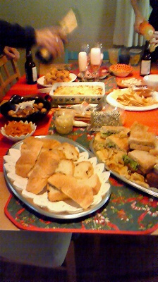 義父母を招いて、ささやかですがクリスマス会をしましたメニューはピザのマルゲリ-タ、鳥の唐揚げ、コーンスープ、シーザーサラダ、ラタトゥイユ、炊き込みご飯。義母持参のぶり大根、たこのマリネでした。ケーキは、あーちゃんと共同制作です。残念ながらやや固めの生地になってしまったやっぱり菓子系は苦手です