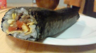 今年は恵方巻きをキムパブ(韓国の海苔巻き)風につくりました。やや、不恰好だけど、プルコギ、錦糸卵、ナムル等巻いて、なかなか好評でした。子供がいると、無言のまま食べるのは、かなり難しいかも・・・